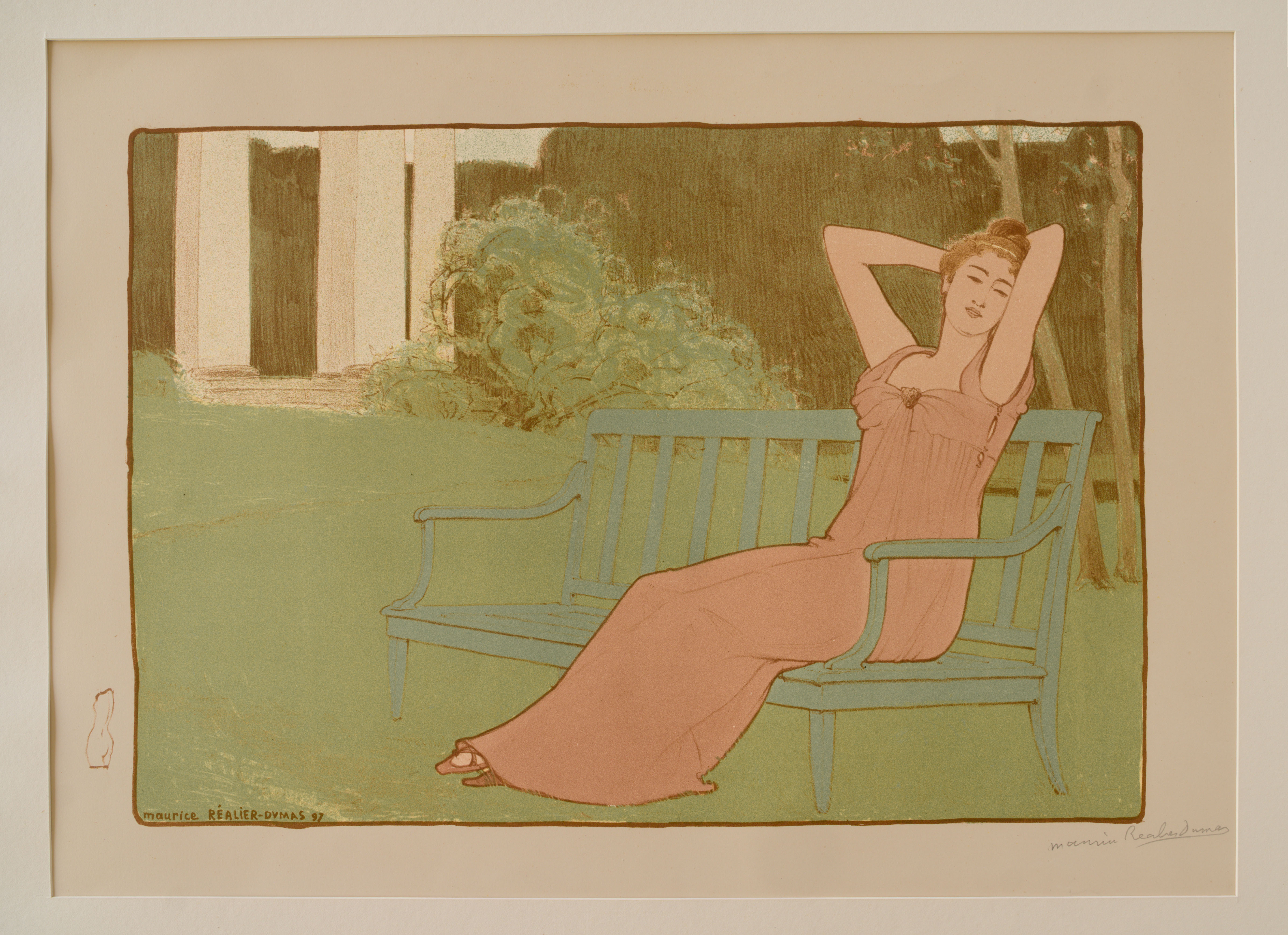 'Corrine' by Maurice Realier-Dumas 1897 - 9"x13" image under glass in 17½"x22" frame, signed in lower right