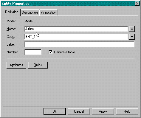 Enter "Airline" as the new entity Name.