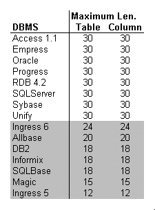 When assigning physical RDBMS object names to tables, columns, indexes, constraints, ets., keep in mind that different RDBMS products have different name lenght limits.