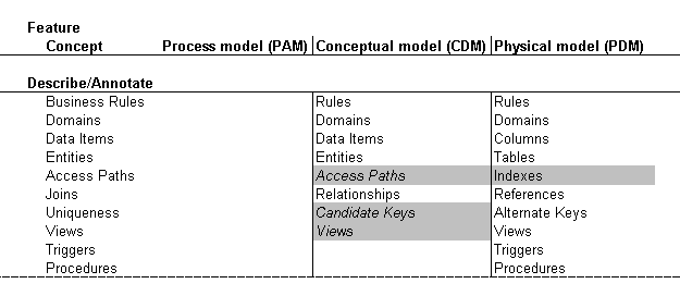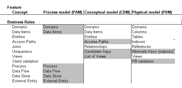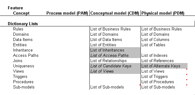 - The PDM should have a List of Alternate Keys on the Dictionary