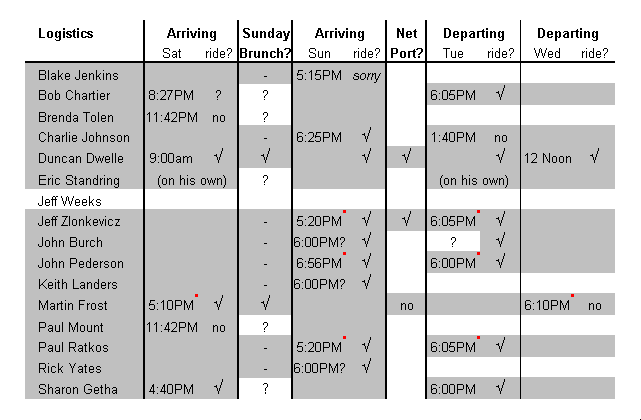 Please keep Duncan Dwelle up to date (via e-mail) with your plans so we can make your travel comfortable and convenient.